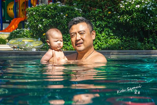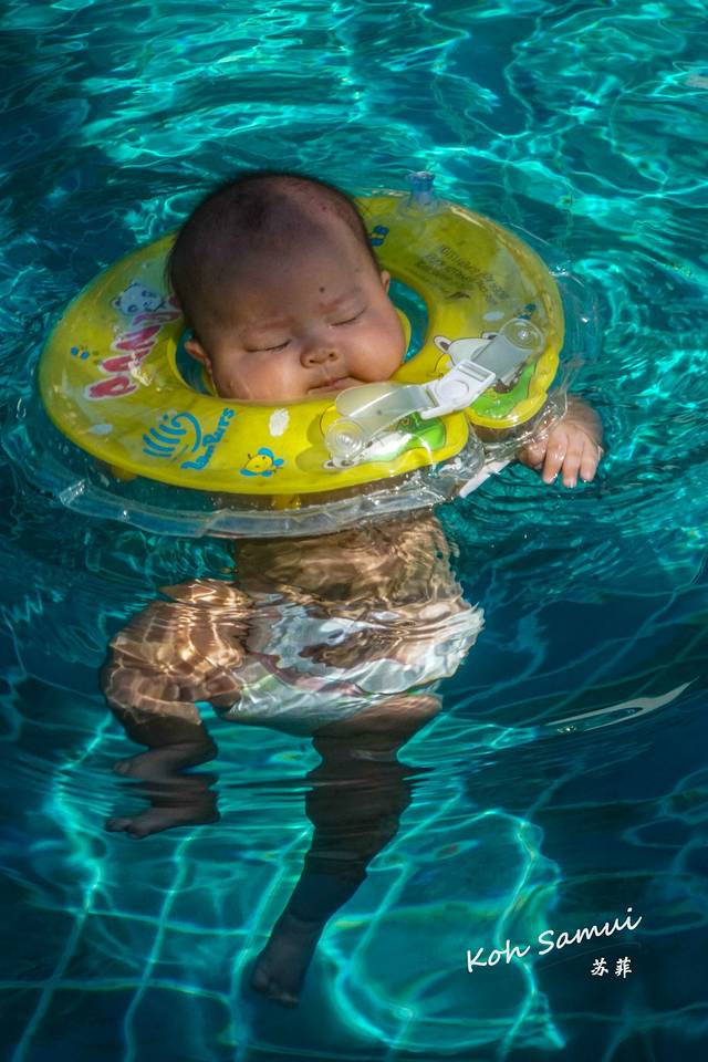 跟着爸爸,小宝宝跳进了泳池。盛夏的阳光里,泳池里的水也是温润的。对于仅有百日的她来说,这一切都是那么地新鲜,那么地好奇,小宝宝的脸上露出满意而享受的表情。