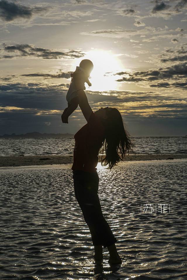 抱着每天早早起床的小BB在清晨的沙滩上漫步,晒一下初露的晨光,是最好的补钙良药。