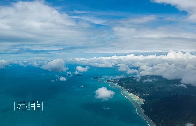 在飞机上再看一样查汶海滩。那深深浅浅的蓝,洁白的沙滩……
