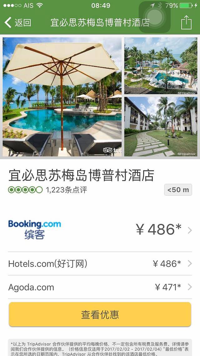 一家位于北部波普海滩的苏梅岛波普宜必思酒店。当天酒店牌价约480多人民币一晚,如遇淡季,也能买到200多一晚的房间。考虑到这里拥有私家海滩、海景泳池和丰富的早餐、方便的周边,这个价钱是否超值呢?