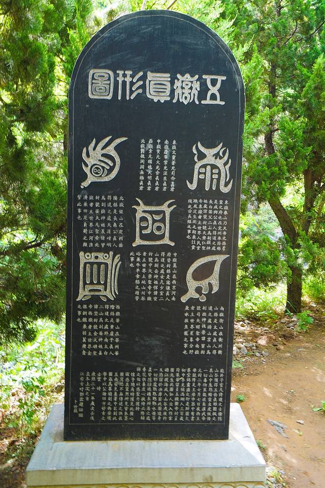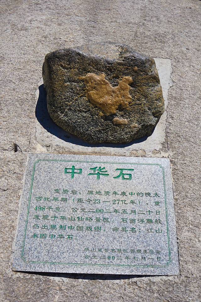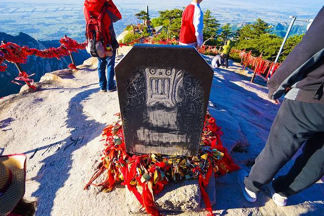 顶上人还不多。地上有一块石碑,刻着五岳真形图中的华山标志。
