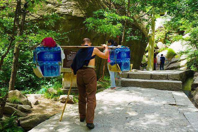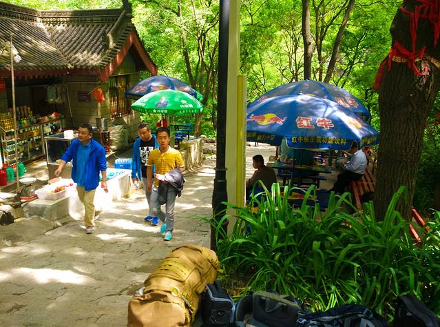 7、华山沿途都有很多卖东西的小店,建议大家只带少许干粮,路上根据需要购买即可,保证爬山轻松。(实践证明,物品价格从山下到山上完全不一样,山下矿泉水是10元3瓶,到了山上我买的是矿泉水11元,红牛18元;毕竟我们都是有收入的人了,就没有全程自己背水和食物了。)