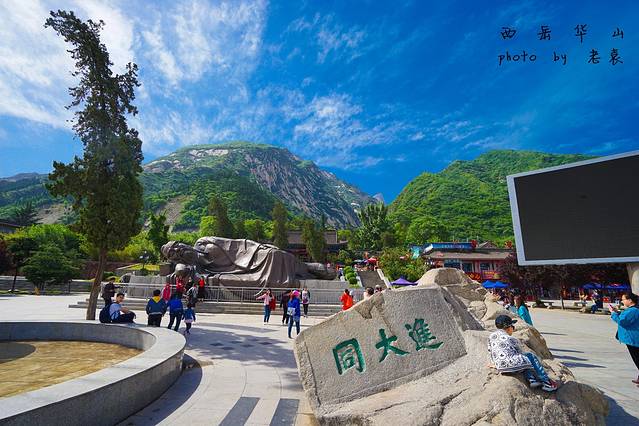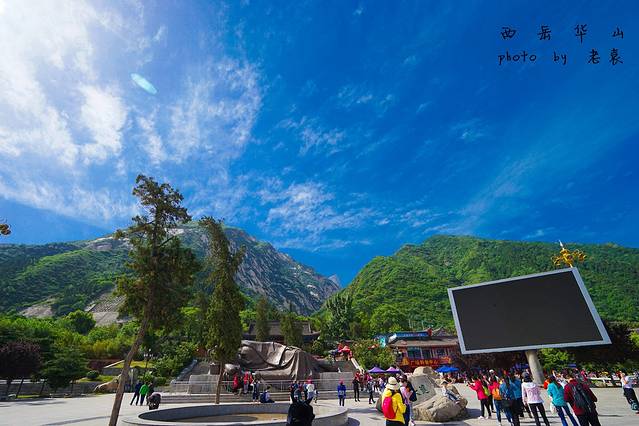 阳光下的华山山脚玉泉广场~