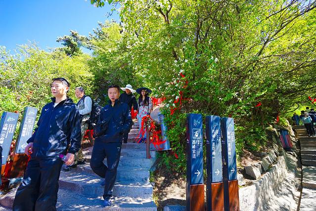 很多看完日出的人,纷纷从饭店的后门,前往南峰~不会都是去长空栈道排队的吧,哎呀妈~
