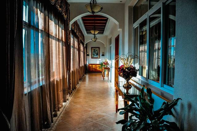中午吃过午饭稍作休整后出门时回眸便看到了非常漂亮的酒店外观。