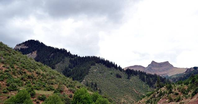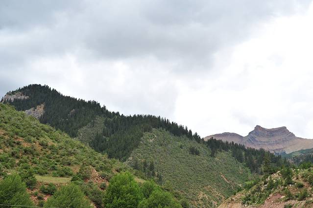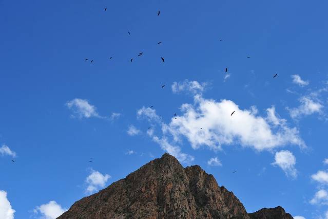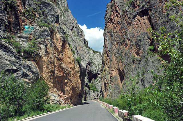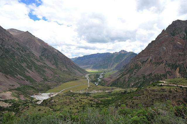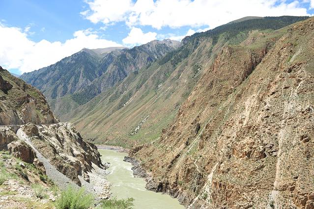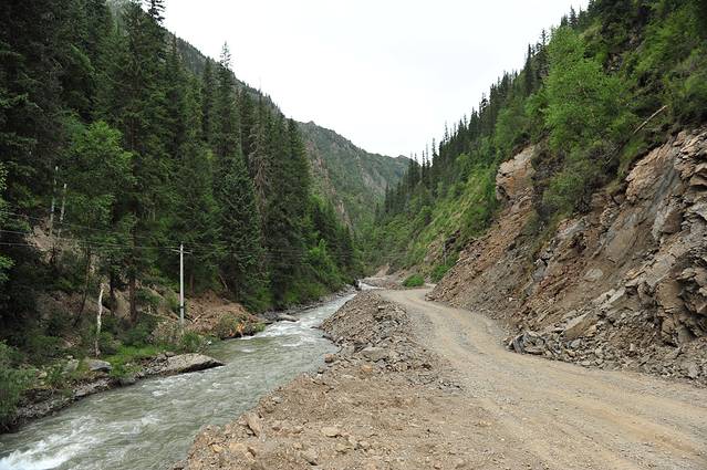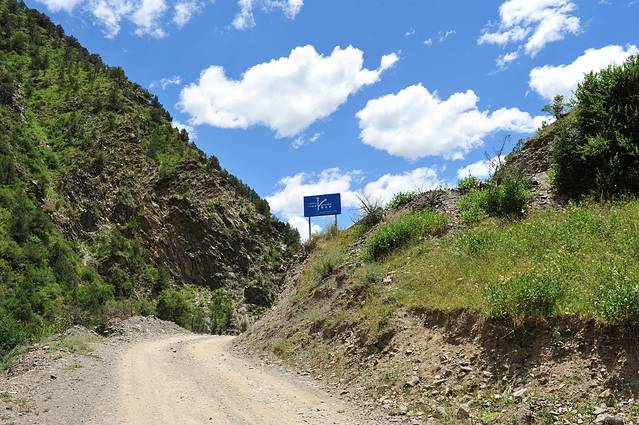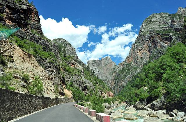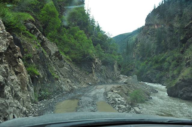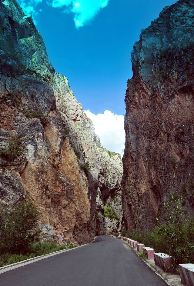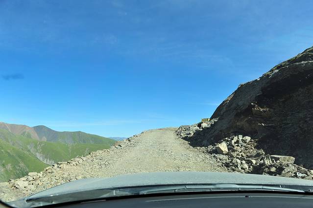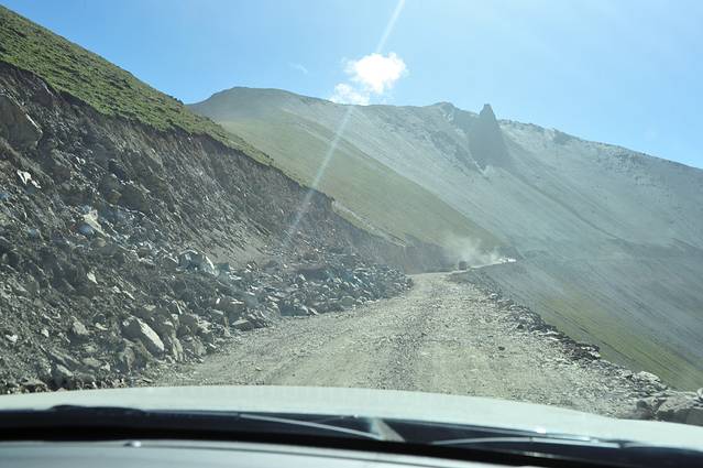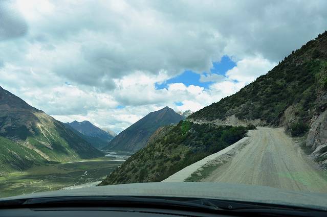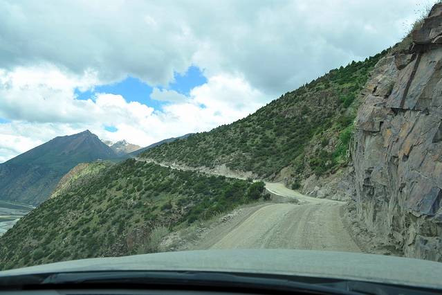 没有拐上这条路之前以及刚刚拐上这条山路,没有觉得多么险,但走了一段发现不对,虽说也是盘山公路,但这条路是沿着山体一侧一直上到山口,路上一直可以看到我们在河谷里走过的路。