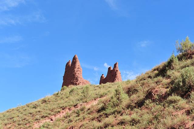 走着走着上一个小坡,拐过一个弯,路感不对,继续前行想验证自己的判断,走了不到一百米看见一个路牌,确定走错路了,还好只走错了不到500米,调头处有一个树荫,干脆在这里停车休息吃午饭。