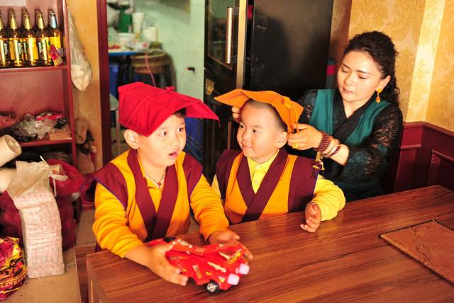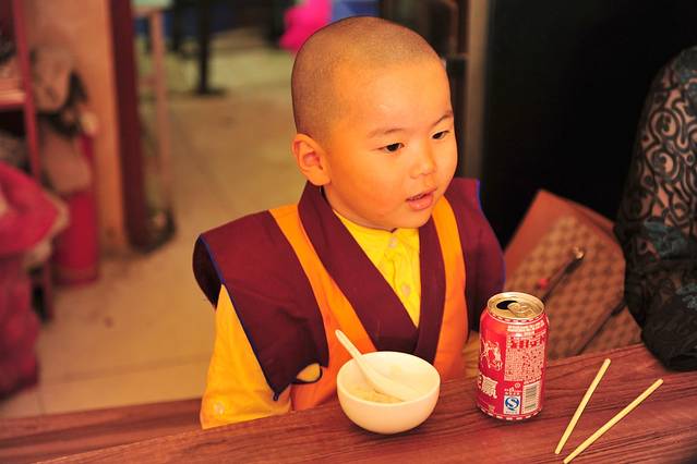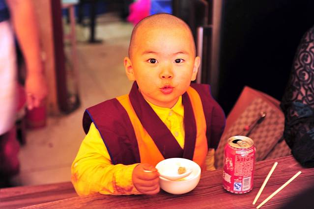 8月3日,上午休息,中午外出吃饭,邻桌的一位漂亮妈妈,带着两个儿子吃饭,开始以为两个男孩穿着的僧人服装是闹着玩,母亲说,这两个相差3岁的儿子刚刚进入佛教寺庙学习,此生将以出家人身份度过。我们不禁愕然,理解和不理解心头并重,看着两个天真活泼的孩童,已经被母亲“私定终身”,他们将来自己还有重新选择的权利吗?而此刻,她们漂亮的母亲,谈起这些却是一脸的自豪与欣喜。
