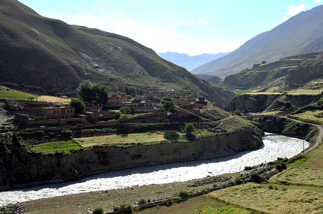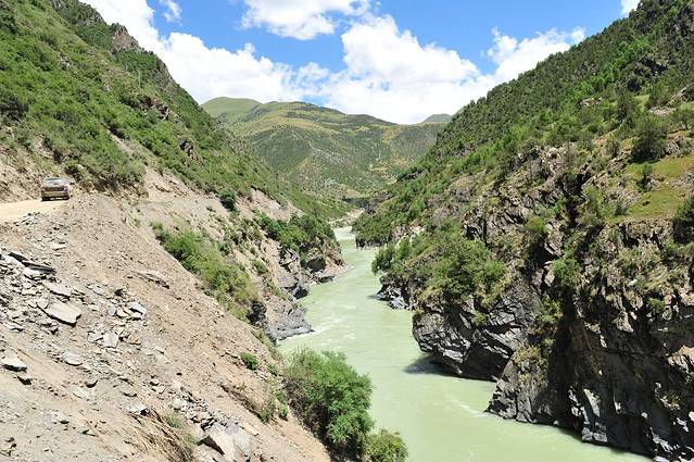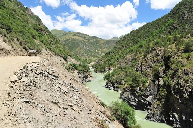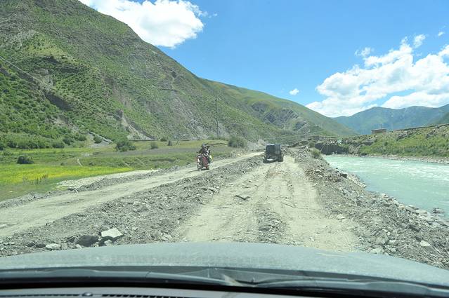 到达到达与S302省道交叉的沙丁路口,北拐沿S302前行,这样我们今天就可以到达荣布甚至丁青,回到G307。沿着河岸边的公路前往沙丁乡。