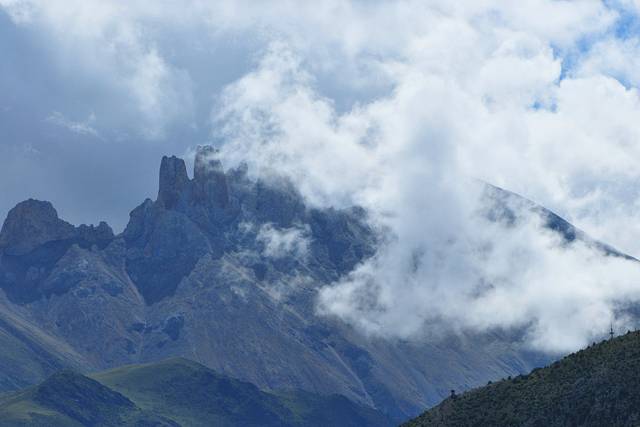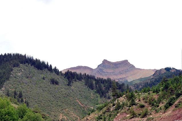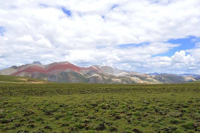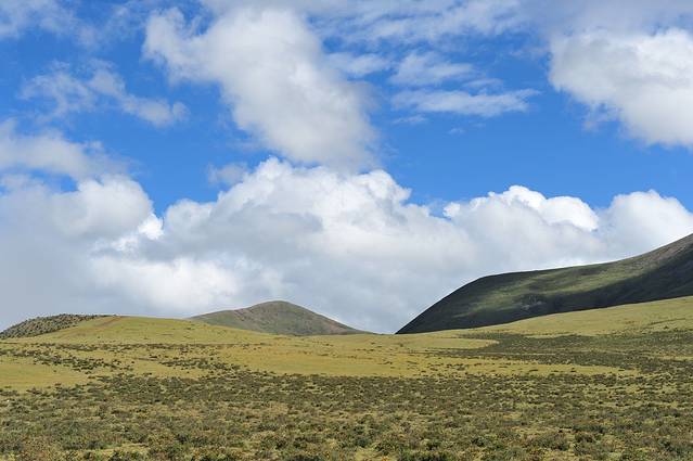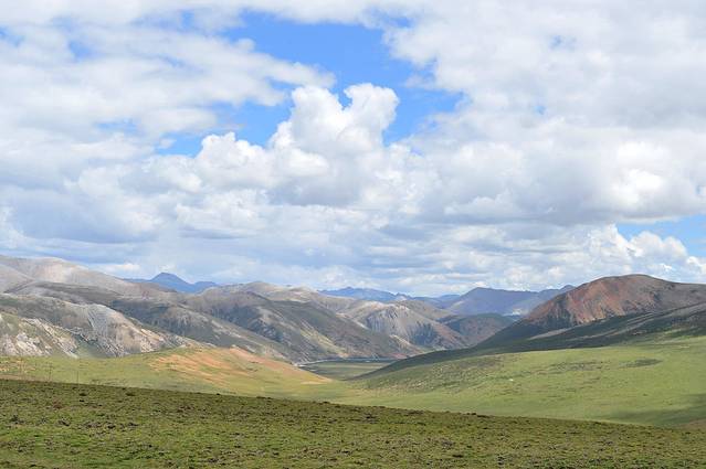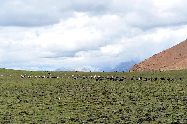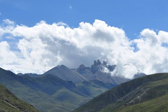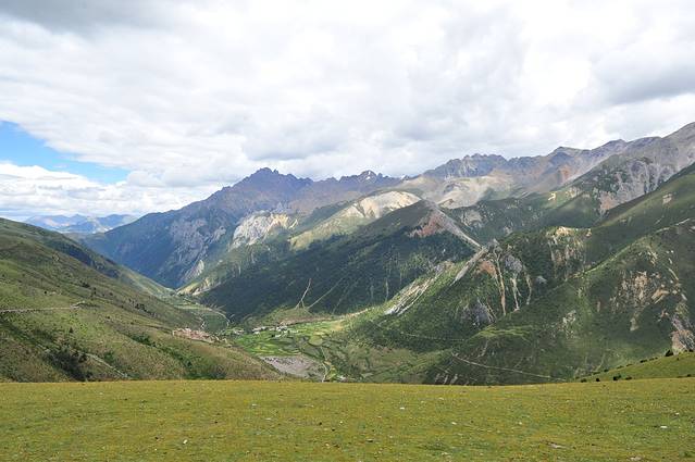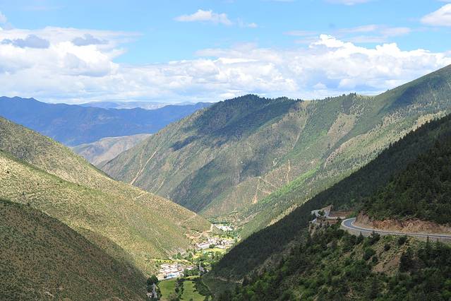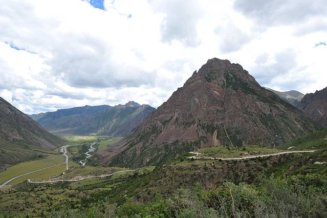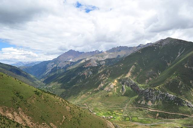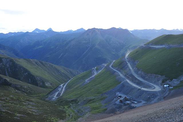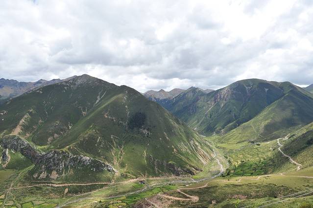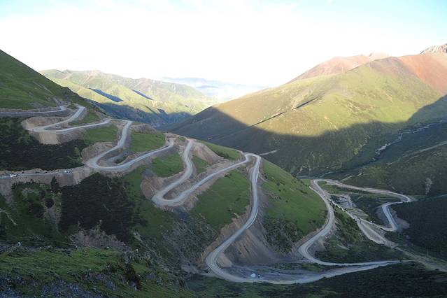 到达垭口,回望一路上来的盘山公路。这里的海拔也在4000以上。