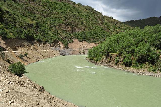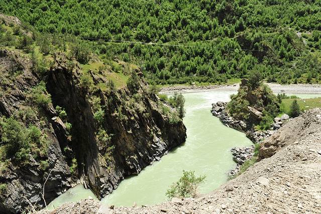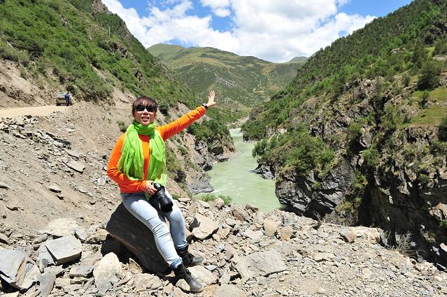 这一段河谷比较险,并有一个大拐弯,把车停在路边,前去拍摄。