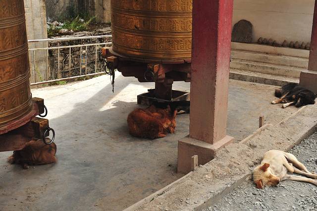大多数藏民,一生中约有三分之一的时间用来转山、转水、转经、转寺、转佛塔......,其中一个目的就是洗去前世的罪孽,同时他们又相信转世、相信有来生,而每一生、每一世都在重复前一生、前一世洗去更前一生、前一世的罪孽。千百年来,就这样世代相传、周而复始,到如今依然没有洗清自身的罪孽,还要继续洗下去......我在西藏的两个多月,见证了许许多多一边虔诚地洗涤自身的罪孽,回过头来换个时间地点,就在制造罪孽。我宁愿相信人之初、性本善,相信只有现代文明能够给人类带来安康幸福的人生和生活,靠“转”是转不来幸福安康的生活的,只会越转越穷、越转越愚昧,如果把一生中用来“转”的时间和精力,用在辛勤劳作,改变生活现状,幸福安康的生活就会离你越来越近。我还是那句话:我相信转山、转水、转经、转寺、转佛塔......一定会有人世代相传地转下去,但终究会演变成一种娱乐健身的意义和目的,一种象征性的祈福与祝愿的形式,而离宗教意义与目的会越来越远......近年来,前往西藏的各条路上,磕长头的人越来越少,更年轻一代的藏民“转“的也越来越少,也充分说明了这一点。