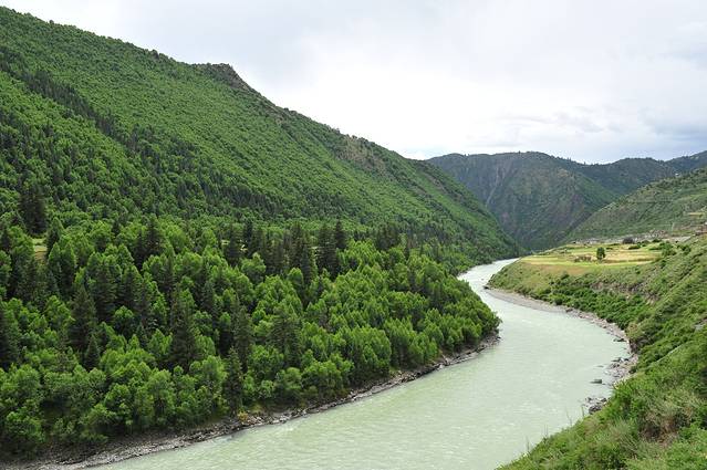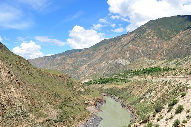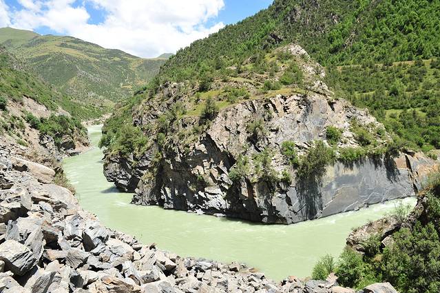 第二天7月28日,有那曲出发,因G317 国道多处路段因修路交通管制,故今天的目的地不明确,临近索县,在G317国道S303省道交叉口检查站得知索县到巴青段因修路夜间才能通过,当即决定走S303前往比如,目的是去达姆寺看人头骷颅墙,再视情况确定继续走S303经边坝、洛隆,再走G214到昌都,或到沙丁北拐走S302到荣布回到G317国道。沿S303前行,过良曲沿那曲河、怒江行近,两岸风光秀丽。