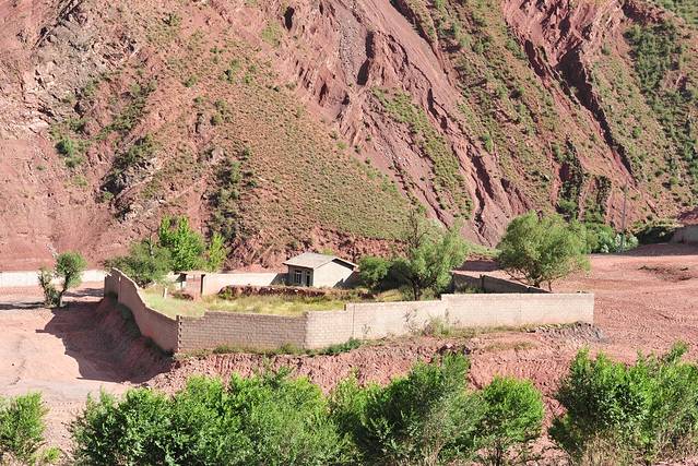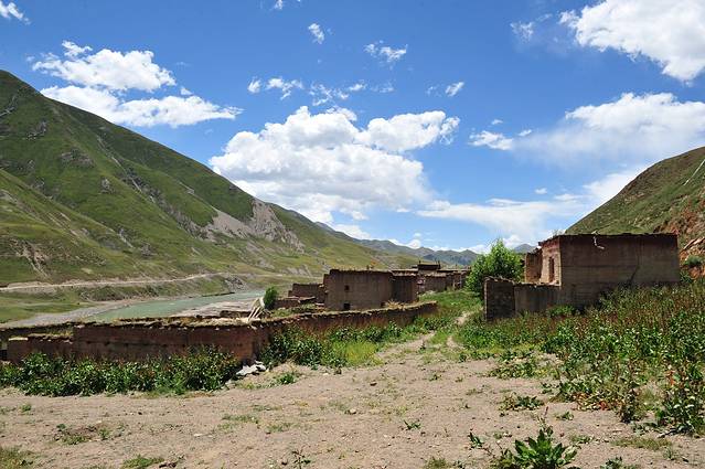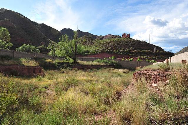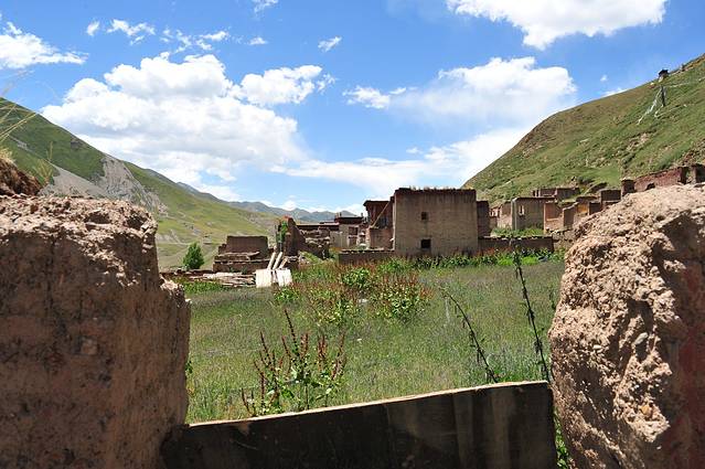 其实卡若遗址就在刚刚拐过弯路基下的照片中围墙围起来的地方,因路上没有任何标记和指示,只好一路询问,在路口问,都指向里面,到里面问,都指向外面,就是没有人能说清具体位置,我们就在离遗址不到200米的路上绕来绕去,最后我决定到那个围墙围起来的地方一探究竟。