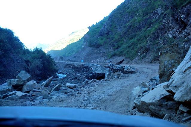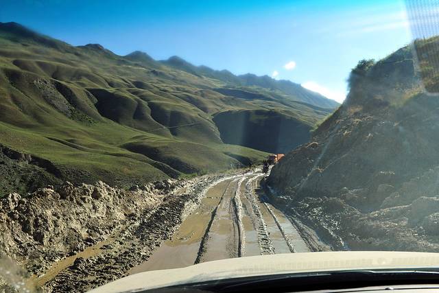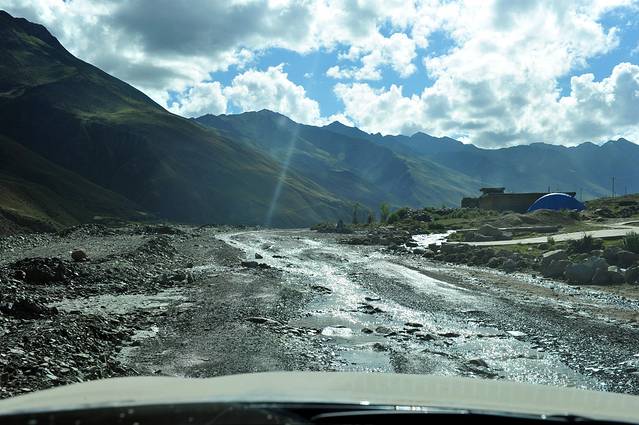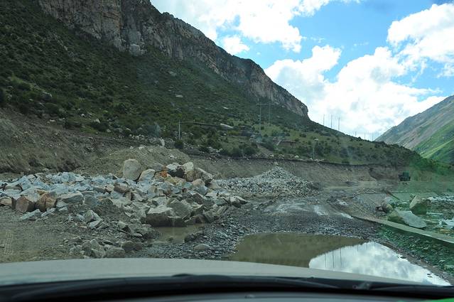 继续烂路!烂路!烂路!这条路是在一条河谷里前行。前方要翻越海拔4000多米的拉丁拉山口,拉丁拉隧道已经贯通,正在进行后续施工。