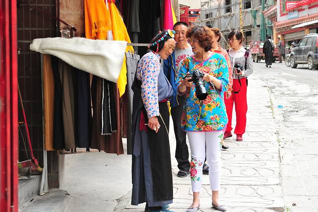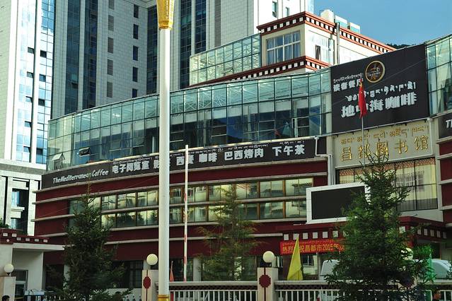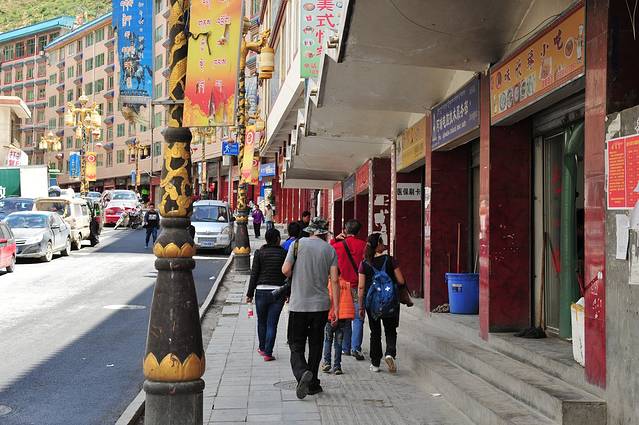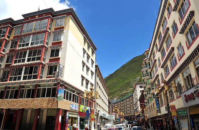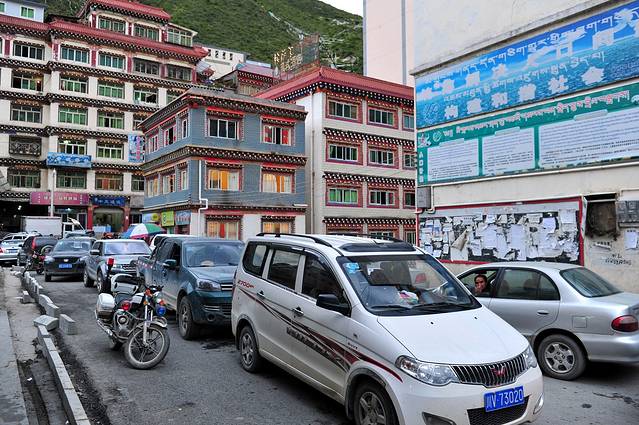 到达昌都市,两个没有想到,而且是两个大的意外,一是想到这里是一个进藏出藏的人流聚集地,但没有想到人流车流如此巨大,街上的人流不亚于北京的王府井和上海的南京路,找了2个多小时的住处,高中低档大中小型宾馆饭店客栈旅店全都爆满,一直找到天黑,终于在里强巴林寺不远一条僻静的小路边找到两个房间,还没有停车位,要停到1公里多外的公共停车场。二是知道昌都是藏东第一大市,但没有想到昌都如此繁华、如此现代化。找住处到处转,随拍了几张照片。