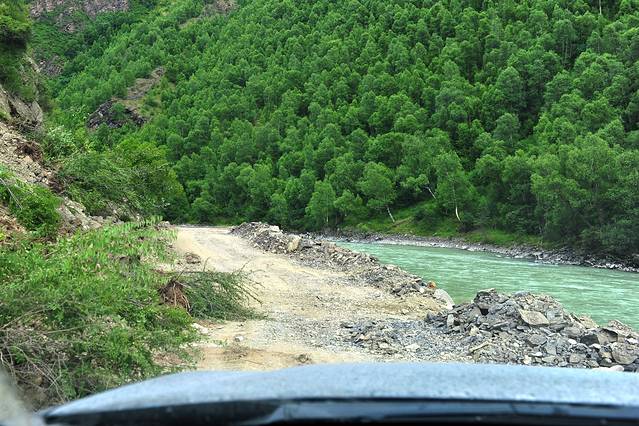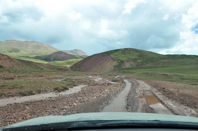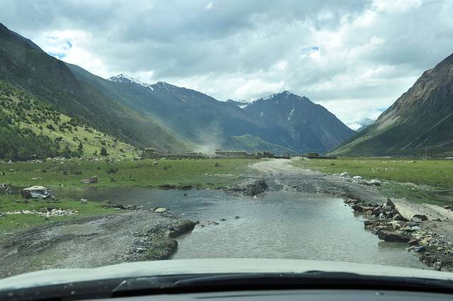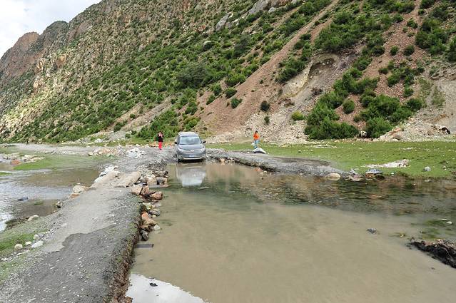 7月29日由比如出发,计划到沙丁北拐走S302到荣布回到G317国道。目的地不确定。拿着地图去询问一个小货车司机,从沙丁走S302是否可以回到G307,都说感觉、应该可以走,但他们都没有走过,也不完全确定,我们只能带着疑问出发了。一出比如县,就进入正在施工的烂路。