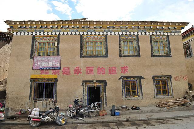 到达沙丁乡,在此询问修车店主,道路应该怎么走,得到的回答让我们大失所望,S302到沙丁就结束了,再往前就是过刚刚建好的桥,有一条上山的小路,只能走摩托车,小路是否通向G317的荣布也不得而知。