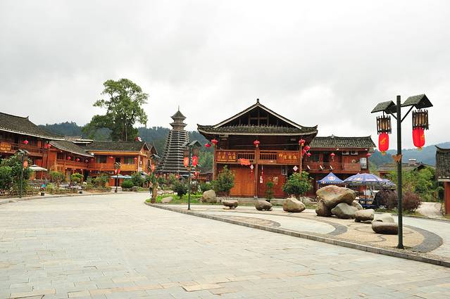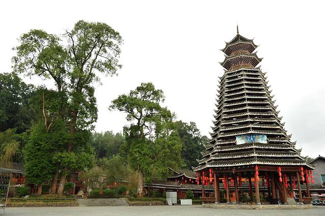 侗寨景区不收门票,进入景区后回看侗寨门楼。