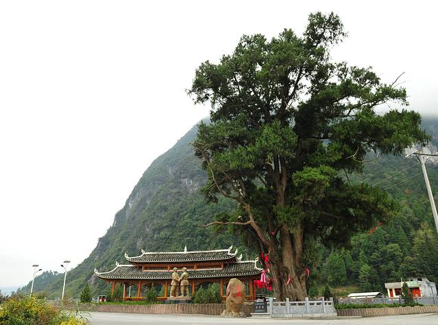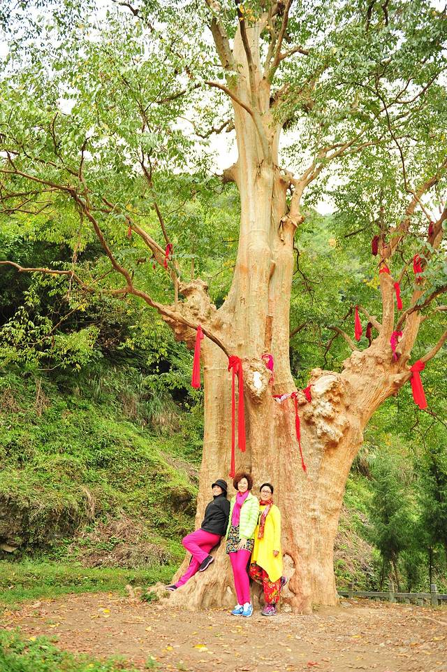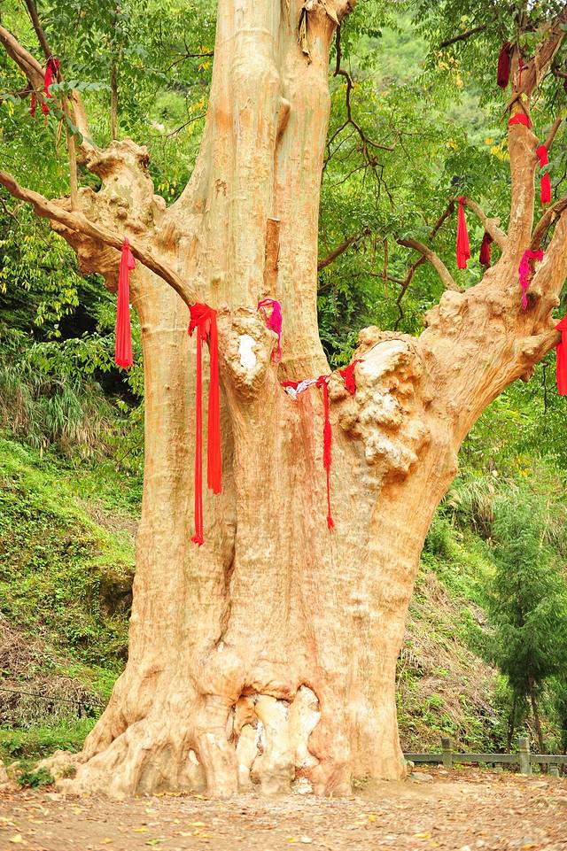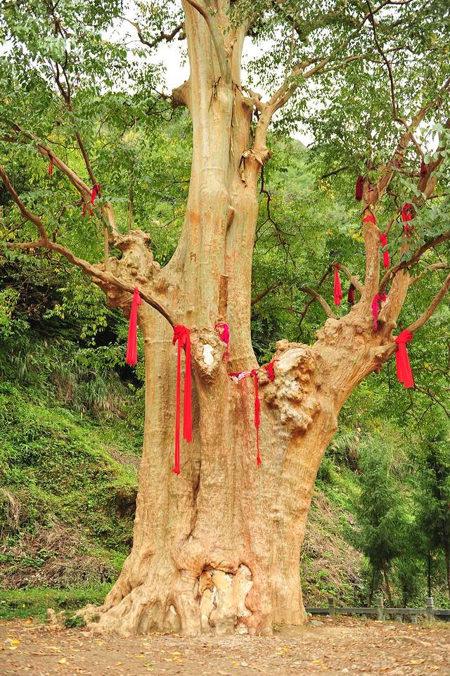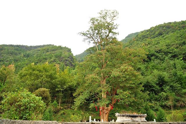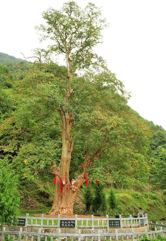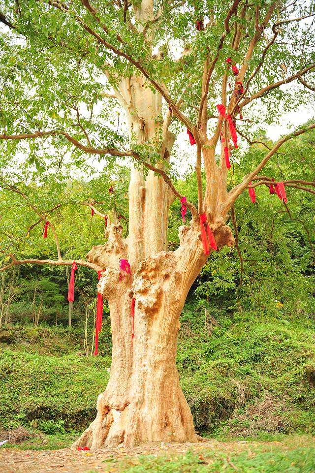 进入园区,一眼看见那颗紫薇王。树龄1380多年,树高34米,冠径15米,胸径1.9米。1998年被选入贵州省古、大、珍、稀树名录。因属第三纪残遗植物,科学界视为活化石。世界上只在日本福冈发现比此稍小的另一株。