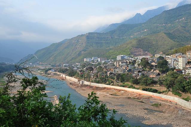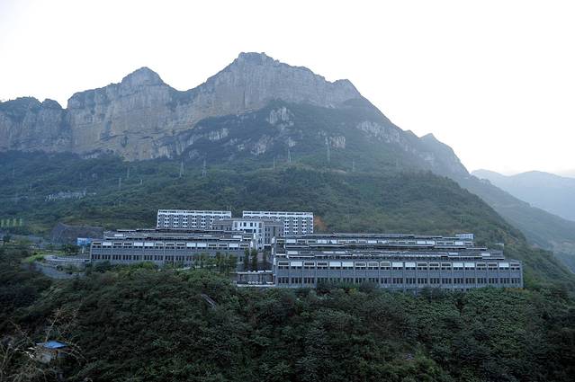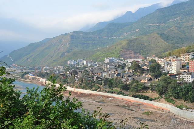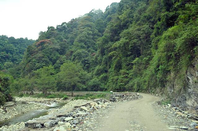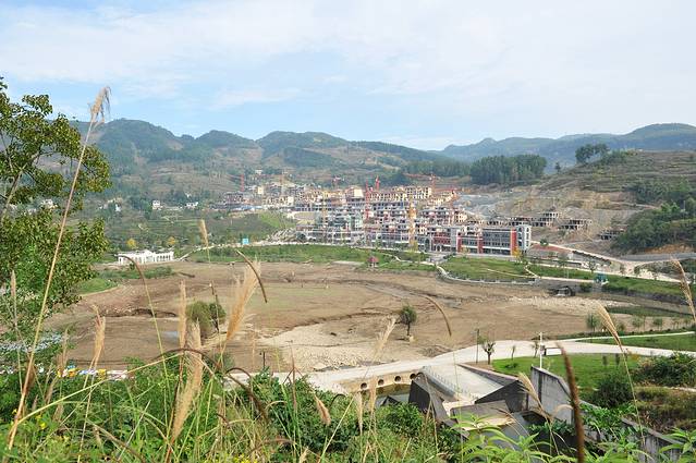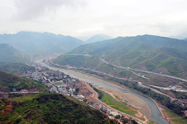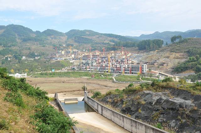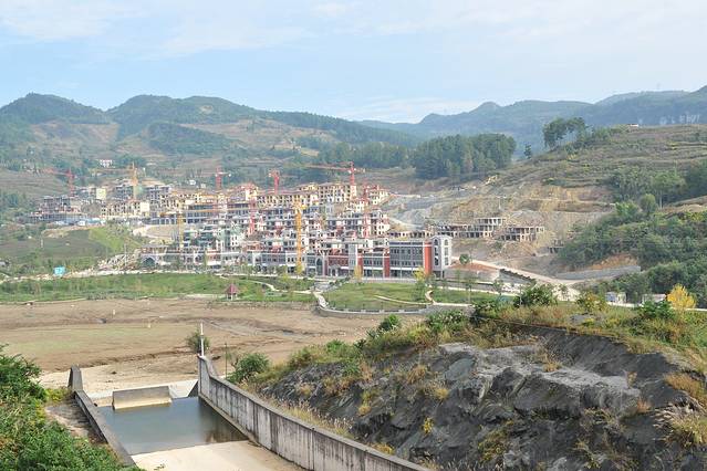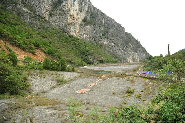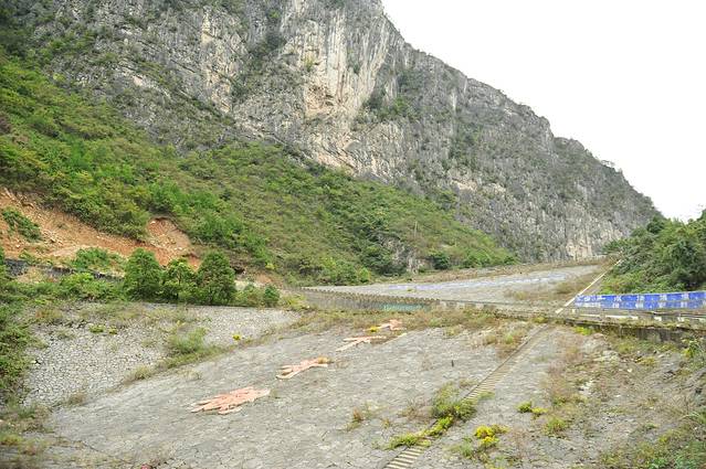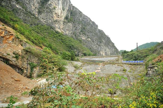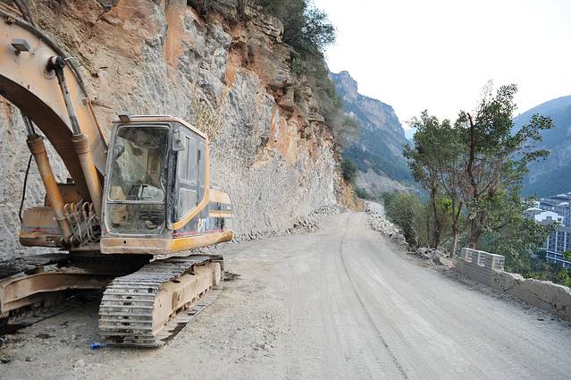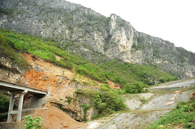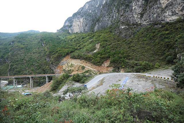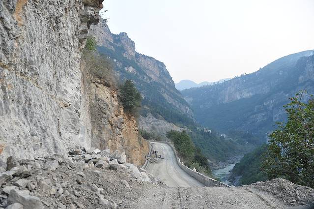 塌方区域的左边正在修建一条公路桥,以取代目前弯弯曲曲的下坝公路。