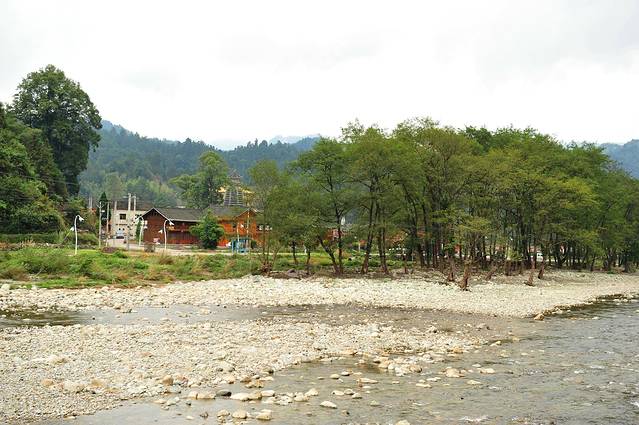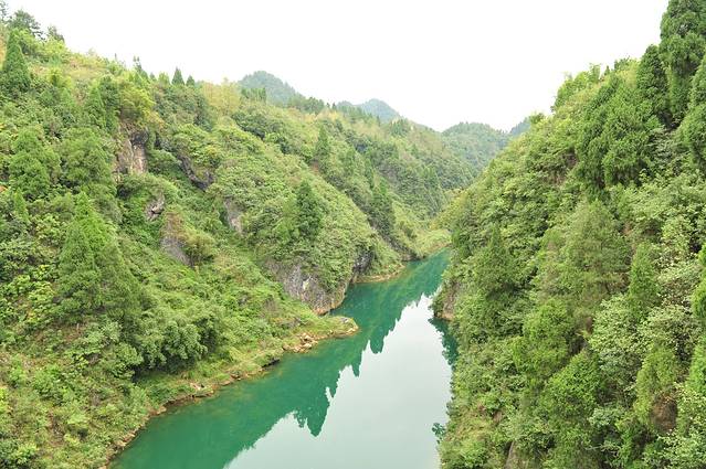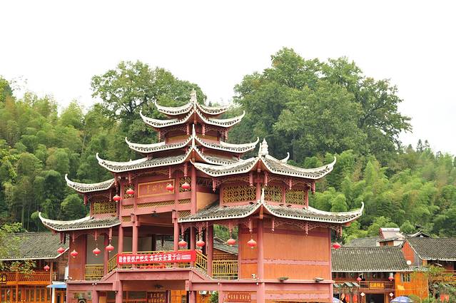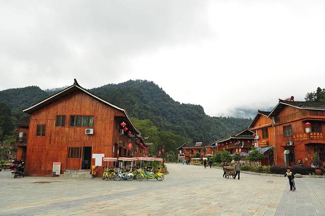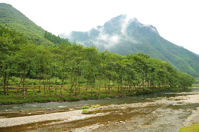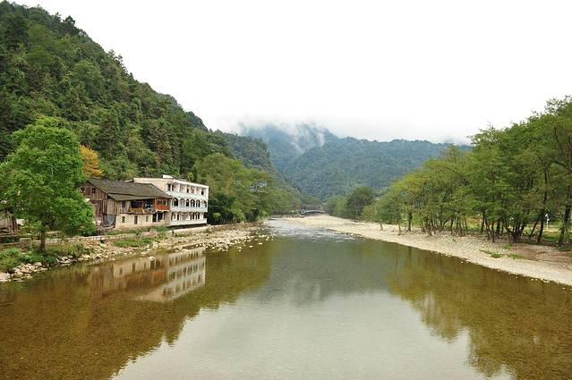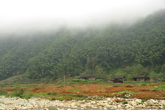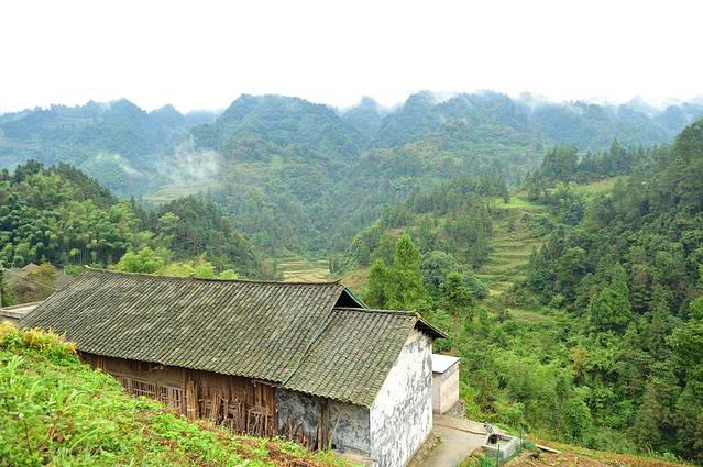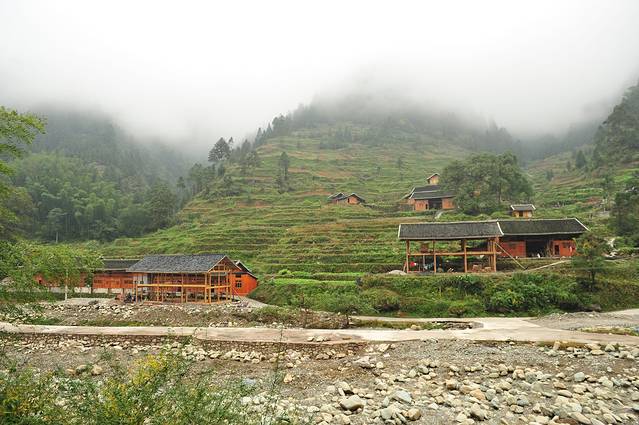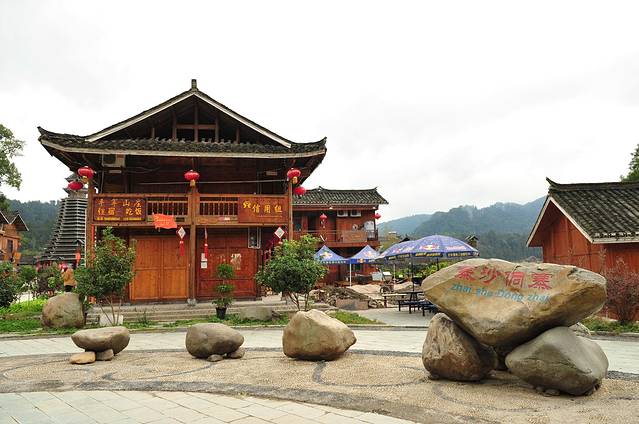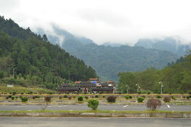 到达梵净山景区,依然是阴天,远看山顶雾遮云,估计上到山顶什么也看不见,我们的行程计划是最后还要回到铜仁,目前想改变计划,待回程最后一站再来梵净山,如果那时依然是阴雨天,就再做选择。最后决定沿环山公路向北经木黄前往印江。离梵净山景区几公里的河对岸,有一个寨沙侗寨。