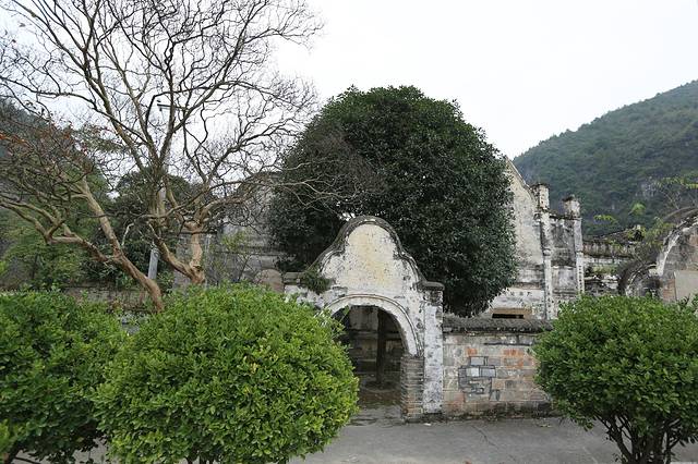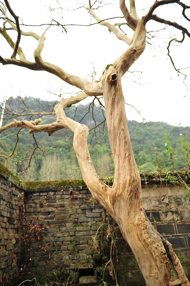 宗祠内左右各有一颗这样少见的巨大紫薇树。