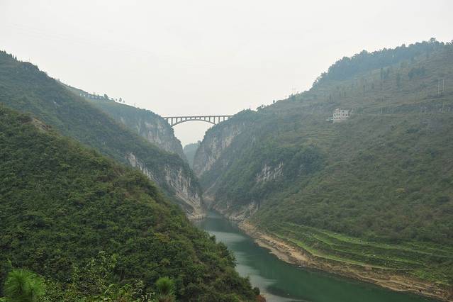 这是位于公路和赤水河对岸的习酒酒库 ,离开二郎镇,当晚到达茅台镇食宿。