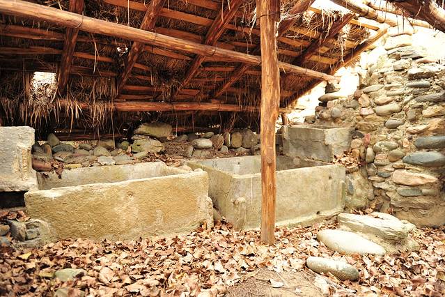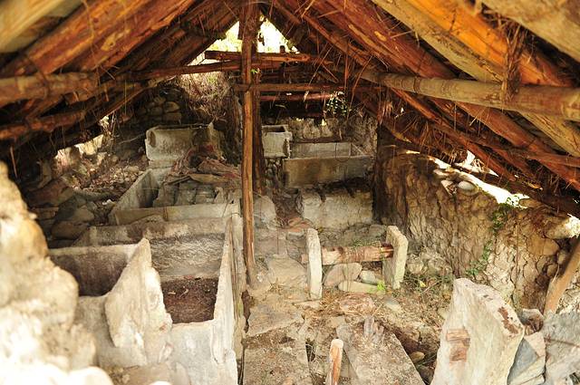 在公路上向下望去,村民说就是河边的这个房子,是造纸博物馆,我们以为遗址就在里面,沿路边台阶下到河边,房子没有锁门,也没有任何人,屋内空空如也,啥也没有。沿房屋绕了一圈,也没有发现遗址迹象,只是确定这个博物馆还在建设中。我们只好又拾级而上,回到公路。继续询问村民,都说就在下面,但又说不出具体地点。