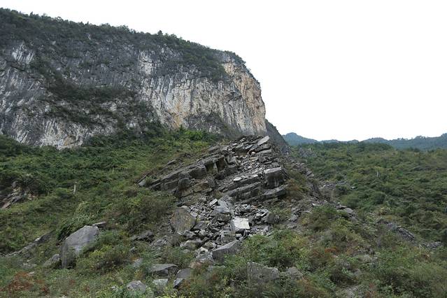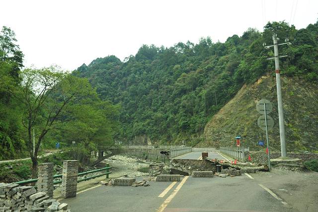 沿环山公路前往木黄,途径一处公路塌方路段,旁边绕行。