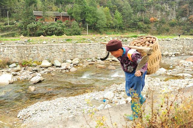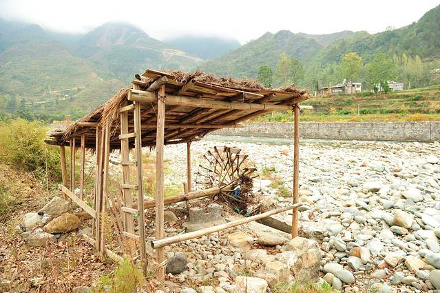 继续前往合江蔡家坳蔡伦古法造纸村,做行程时查资料 :蔡伦是湖南人,蔡家坳村寨蔡氏百姓多从蔡伦老家迁徙至此,带来了蔡伦的古法造纸文化,流传至今。目前在合江村庄的沿河两岸,有传统造纸工具器皿,有古老水车,水槽,烤料窑,一百多个老作坊,从事造纸生产百多户人家,年产白皮纸约三百吨,这个传统的造纸工艺流程复杂,有说法``造纸不轻松,七十二道工,道道需用工,外加一道口吹风``。这里的百姓纪念着蔡伦祖师,家供蔡伦纸牌神位,并在每年农历三月十九日蔡伦生日举行纪念蔡伦活动。我们到达合江后,到处询问古法造纸遗址,得到信息就在公路下面的江边。