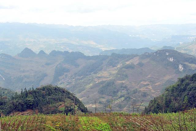 进入贵州以来,我们基本每天都是在这样连绵起伏山路间行车,也真正体会了常挂在嘴边的云贵高原中的贵州高原是如何的,贵北高原海拔多在1500米左右。