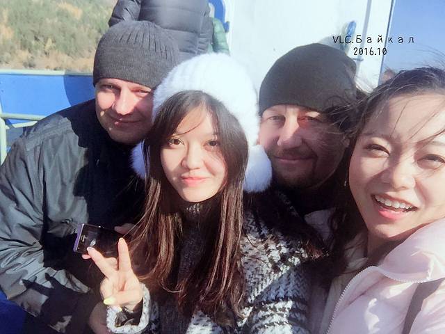 在船上我们遇到了三个俄罗斯“酒鬼”大叔,他们也是到这里旅游。三位大叔非常开朗,动作很抓马,先是和我们用英语聊天开玩笑,后来突然开始邀请我们在船上唱歌跳舞,表现欲十足。后来我们都跑到甲板上拍照,三位大叔坐在甲板上喝酒,无比惬意的生活。