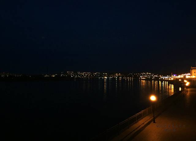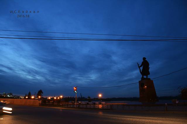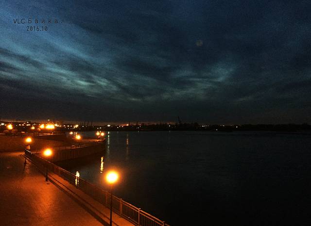 安加拉河源出贝加尔湖,沿岸有很多著名城市。夜幕下的安加拉河河畔行人很少,大概天气暖和一些的时候会有很多人在这边散步吧。