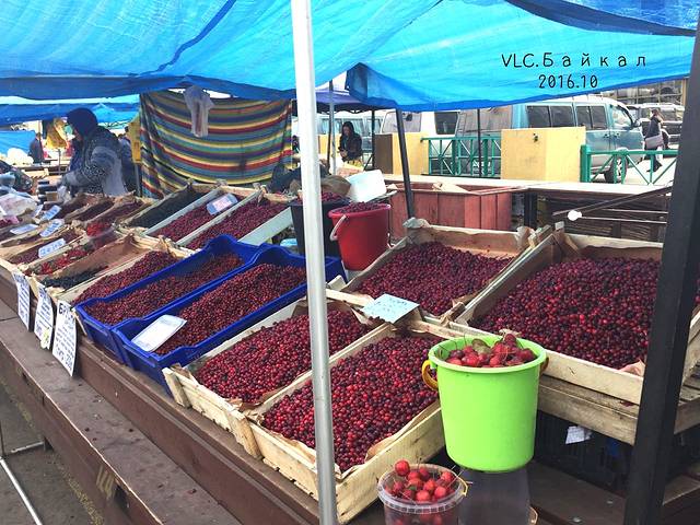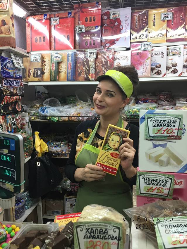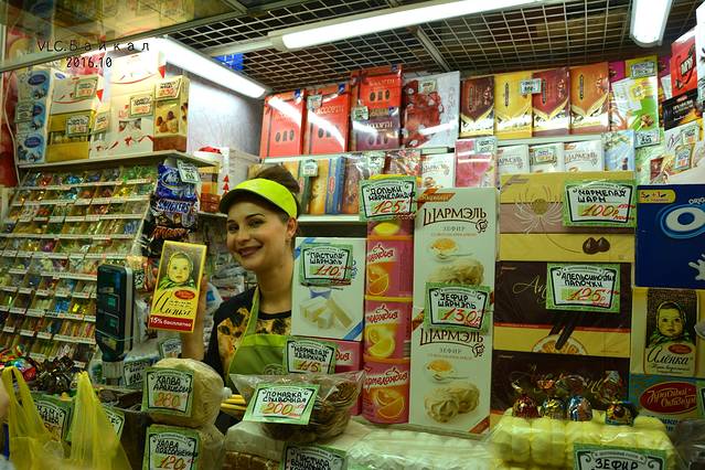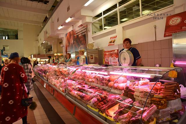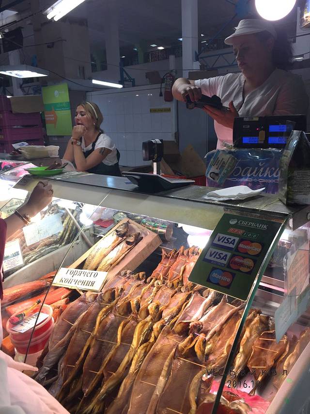 室内市场非常大,许多摊位也支持银联和VISA付款,对于一直用信用卡提现的我们来说是个很大的解脱。伊尔库茨克的黑鱼子酱非常有名,对比了几家的价格,我们最后选择了这位胖姐姐家的。这个胖姐姐人非常可爱,只会说ok,我们继续使用翻译软件+手脚并用的方式和她沟通,她一直乐呵呵的。不过付款的时候又出现了问题,他们的pose机联网非常慢,刷卡一直失败。胖姐姐一直没有放弃,很有耐心的刷了一次又一次,我们也早已习惯了战斗民族的效率……大约等了半个小时,终于付款成功了…