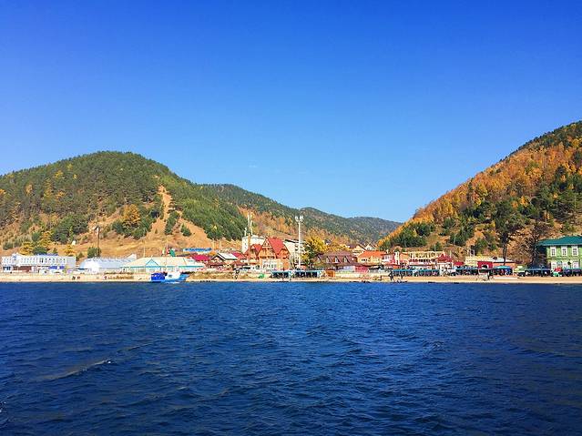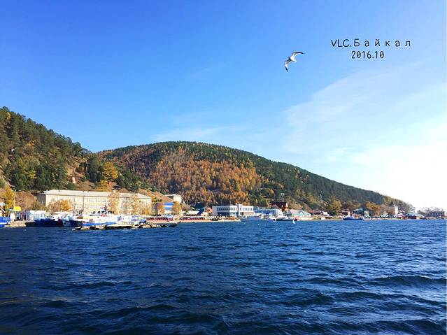 在贝加尔湖上看到的利斯特维扬卡小镇像是童话的世界,冰蓝色的湖水,秋季金黄色的山丘,还有一幢幢彩色的小房子,像一幅天然的油画,美的很不真实。贝加尔湖也仿佛有一种魔力,看着冰蓝色的湖水,心情会瞬间沉淀下来,沉醉在湖面钻石般闪耀的阳光,猜想着深藏在湖心深处的秘密。