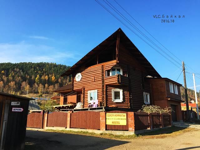 大约一个半小时后,右边的视野忽然开阔起来。司机告诉我们右边就是贝加尔湖,完全没想到,贝加尔湖竟然这么大,视线范围内看不到尽头的湖面,更像是汪洋大海。我们预定的民宿在半山腰,是一间非常有人气的小木屋旅店,司机根据地址+询问路人找了很久终于找到。我们下车后他也没有立刻就走,很负责人的帮我们找到了民宿主人。一位英语不错的阿姨热情的接待了我们,房间还在准备中,她让我们先到下面的一间小木屋阁楼中休息。我们和司机约定了转天回去的时间,和他告了别。