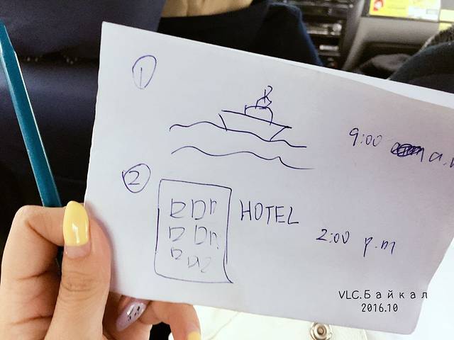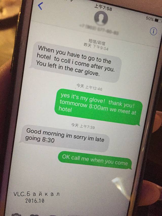 ⑦伊尔库茨克有个比较奇怪的现象,出租车招手基本不停,需要电话叫车,语言不通又是非常大的阻碍。住的偏的话,晚上出租车还不打表,漫天要价,语言不通你也无法划价,而且战斗民族的司机都非常的彪悍,出租车挡风玻璃基本都是破的。这次非常幸运的在第一天遇到了一个热心的司机小哥,懂一丁点英文,主动用翻译软件和我们沟通,之后大的交通出行我们都直接联系的他,价格也算合适。他的电话是,邮箱,有需要的话可以试着联系他,最好是发英文短信,而且是用最简单的关键词沟通就可以。
