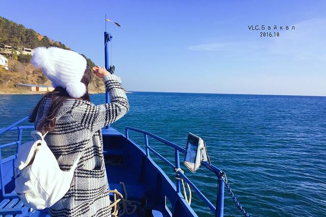 在鱼市场饱餐后,我们到码头购买了船票,600卢布/人。贝加尔湖的湖面上风很大,从船上望向贝加尔湖深处,依然是一望无际的视野,明明是游湖却有出海的错觉。贝加尔湖是世界上最深的湖泊,最深处达1637米,也是蓄水量最大的淡水湖,面积31722平方千米,怪不得曾经被称为“北海”。其透明度达40.5米,水质纯净,这也是它常年呈现冰蓝色的原因。