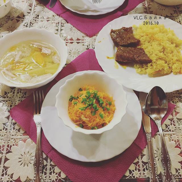 餐厅外的炒饭,味道很像新疆抓饭。胡萝卜似乎是战斗民族每餐必备的蔬菜。