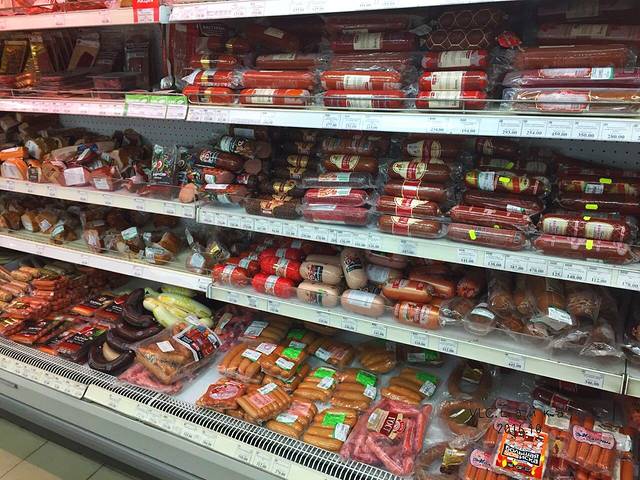 来不及再到市区,我们在宾馆旁找到了一家超市,继续采购了一番。俄罗斯的火腿肠种类很多,非常美味。