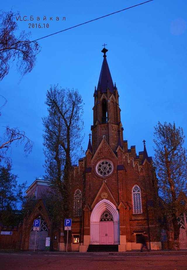 波兰救世主大教堂就在基洛夫广场旁边,是伊尔库茨克唯一的天主教堂,当地人大部分信仰东正教,这个教堂是波兰移民百年前建造的,属于晚期哥特式建筑风格,是一座规模挺大的砖红色的教堂。