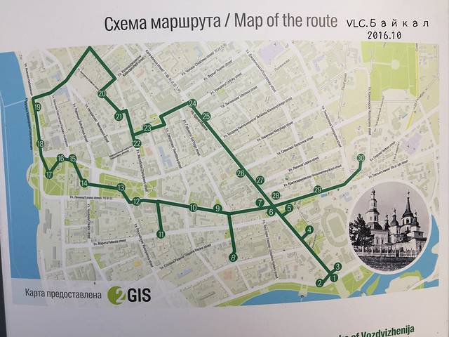 战斗民族的办事效率真的太慢,办理酒店入住竟然耽误了快两个小时。我们住的北京宾馆距离市区大概20分钟车程,周围很荒凉,非常不方便,根本买不到电话卡,也无法上网查地图,所以我们一直处于失联状态。按照计划,我们先是要去基洛夫广场,那边教堂比较密集。语言不通,我们求助于导游,但不知他如何跟司机说的,只把我们送到了130广场。后来才知道,130风情街算是伊尔库茨克市区较为繁华的商圈地带,我们到商场中卖手机的店询问,可是我们的护照还在酒店被扣押办入住,无法购买电话卡。没办法,我们只能继续边走边找碰运气,幸好出门前大淳借着宾馆的网络,从马蜂窝上把景点问路卡截屏了。这个广场也比较热闹,没有地图没有方向的我们,开始用最原始的方法向行人问路。