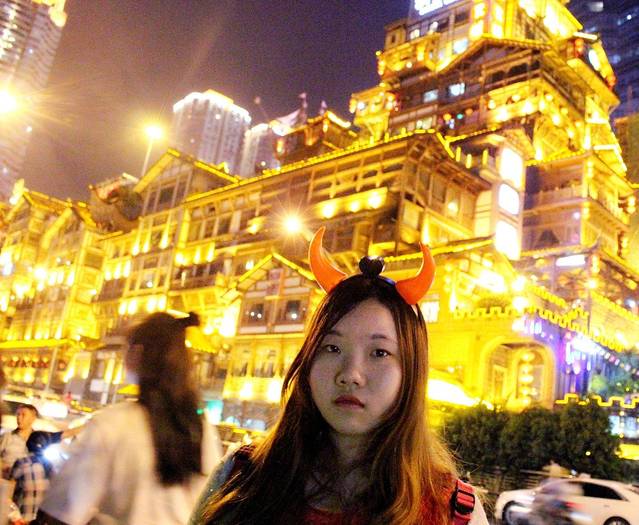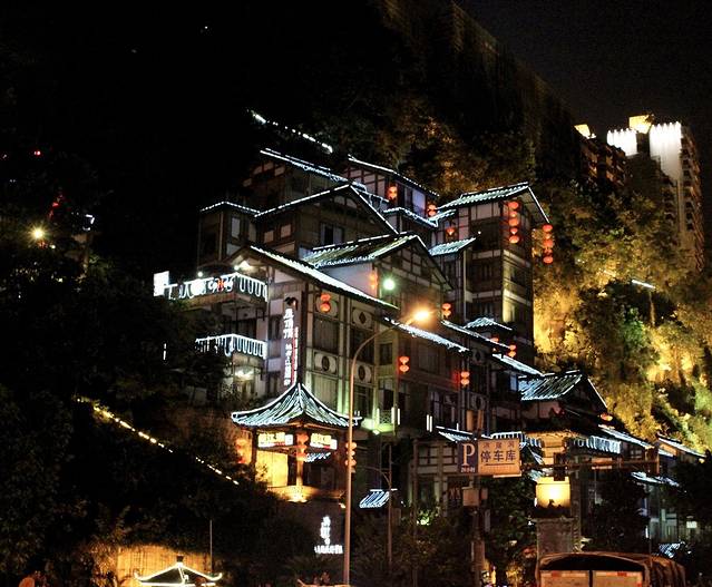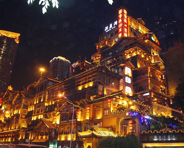 ——因为恰巧是欧洲杯决赛,我们肯定不会这么早睡对不对:)我们就打车去了洪崖洞,只要起步价非常方便。