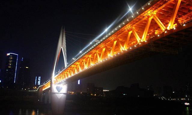 ——但是因为洪崖洞的灯光熄灭的关系,使大桥看起来很美很美~