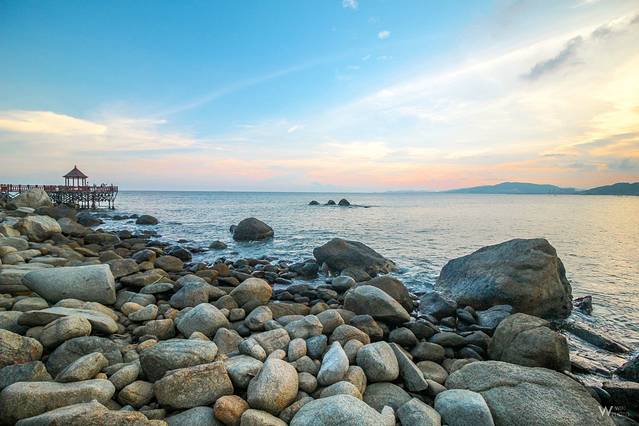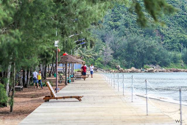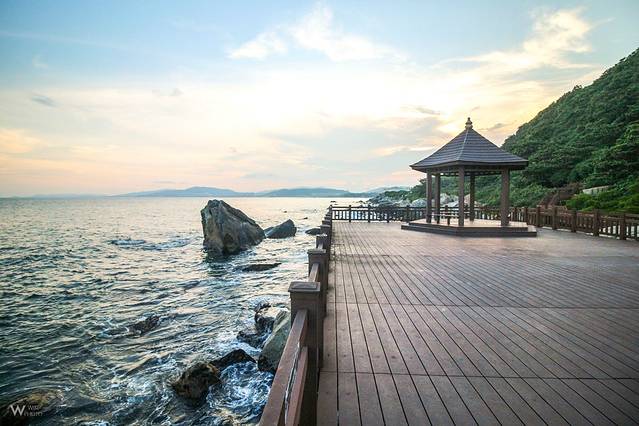 这天早前陵水的朋友在电话中有推荐我们到中信香水湾的木栈道上走走,说这是她心里香水湾最美的地方,于是我们赶在太阳落山前也开车过来看看。
