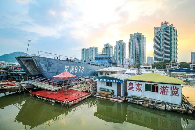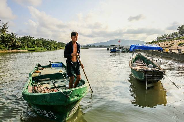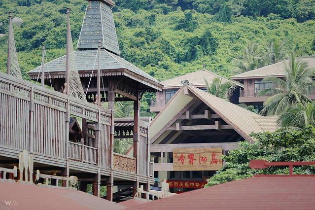 从这儿向海棠湾的五星级酒店群望去,距离已经比较远了。但是十年前,这里已经是生活气息浓郁的渔港村子,而海棠湾那一片只是原始的白沙滩呢。