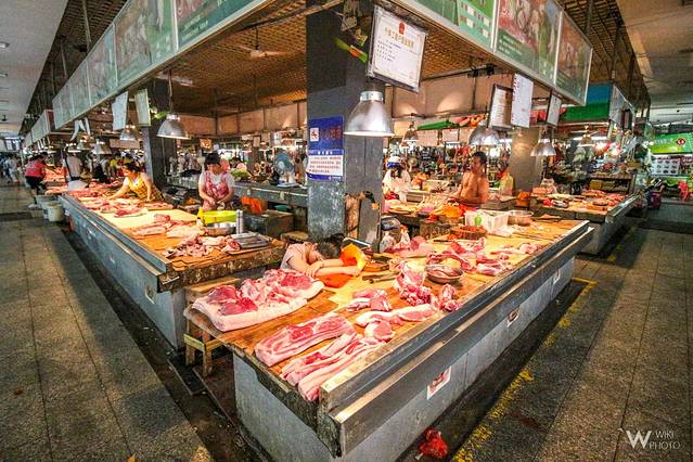 第一市场还有肉类摊点,不过游客一般不会逛这一区域,都来三亚吃海鲜了,谁还买猪肉牛肉啊。