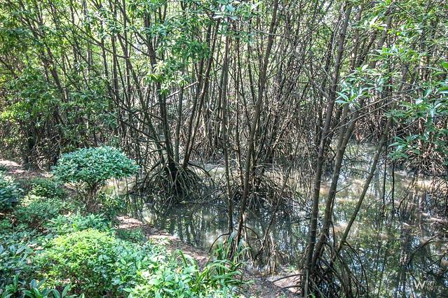 简单休息后,我们就穿过商品街走到了三亚河边,沿着河滨红树林景观带一路往第一市场走了。