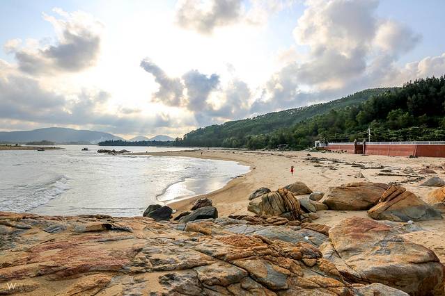 中秋假期的首站就给了我们一个意料之外的惊喜。你也许知道三亚有亚龙湾、海棠湾、三亚湾、大东海,但你可能没听过崖州湾,更没听说过红塘湾。红塘湾位于天涯海角和南山中间,无论是旅行团还是大多数自由行游客都从天涯海角直接坐巴士前往南山,根本就不知道这两个著名景点中间藏着一片美丽迷人的海湾。